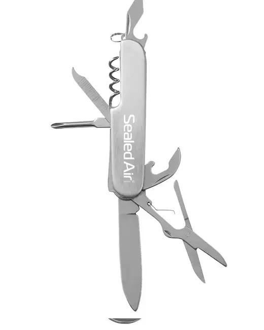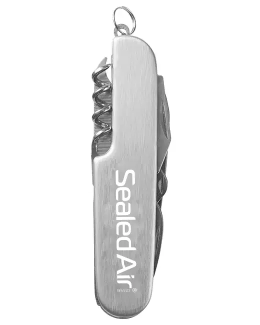 - 8 functions include a knife, nail file, scissors, can opener, bottle opener, flat head, Phillips screwdriver and corkscrew