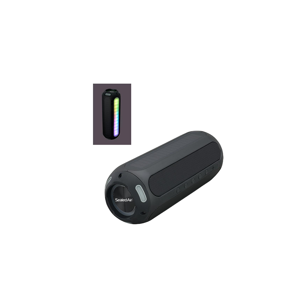 - Rugged 20 watt Bluetooth® speaker (2 x 10 watt) with 2 solar recharging panels